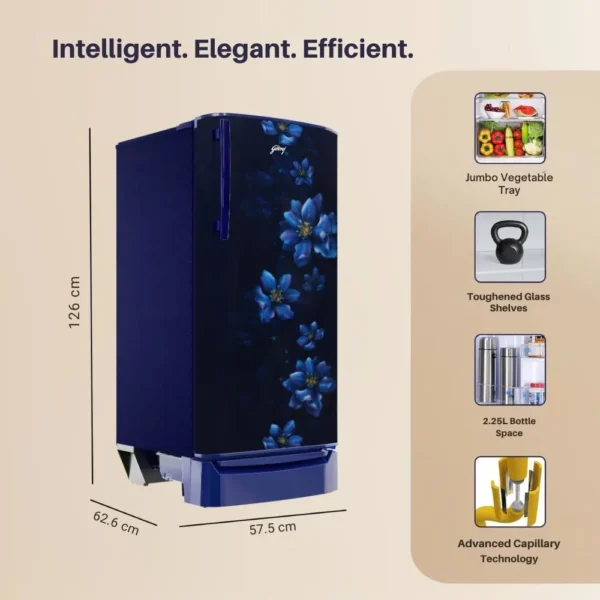 1 review for Godrej 183 L 2 Star Farm Fresh Crisper Technology With Jumbo Vegetable Tray Direct Cool Single Door Refrigerator (RD R190B THF BR BL, Berry Blue)