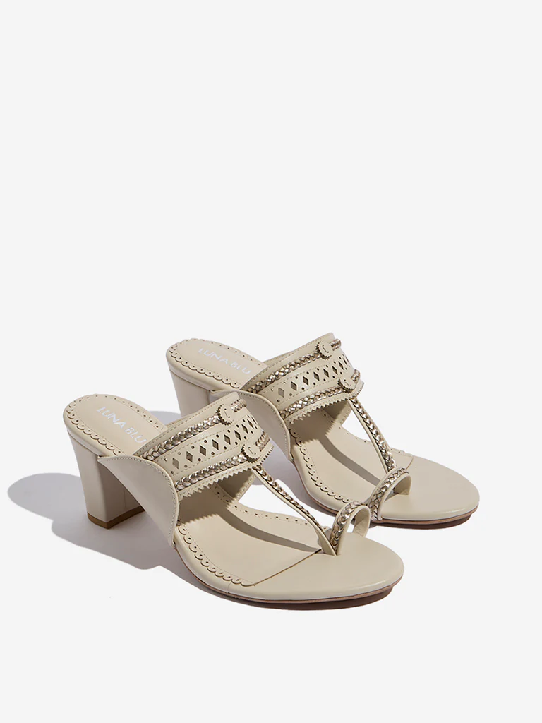 LUNA BLU Ivory Kolhapuri Block-Heel Sandals
