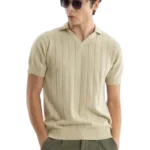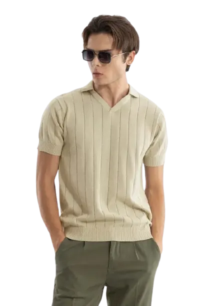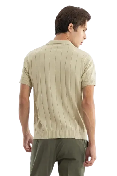 Stay cool and stylish with this khaki polo T-shirt from Snitch. Made from soft cotton with a textured pattern, this slim-fit polo offers a casual yet refined look. The absence of closure adds to its laid-back appeal, perfect for weekend outings or casual Fridays.
