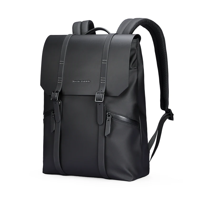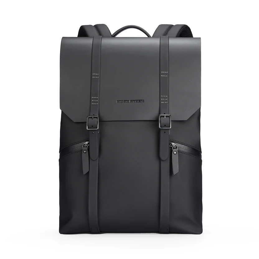The MUKE II - MR1622 backpack by Mark Ryden has a folded top with a buckle for security and concealed side zips for easy access. Made from waterproof nylon with a polyester lining, it weighs 0.85 kg. The 26L backpack includes adjustable padded straps, and a USB port, and fits a 15.6" laptop and an 11" tablet.