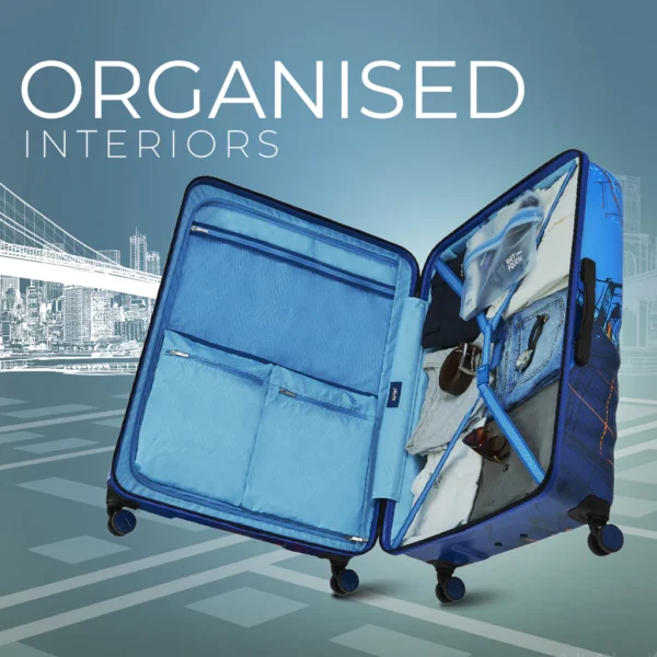 Introducing the Safari Brooklyn Printed Trolley Bag – your perfect travel companion! Crafted for those who seek both style and substance in their luggage. The Brooklyn Hard Luggage boasts a visually captivating printed Polycarbonate shell, ensuring your luggage stands out in the crowd. This remarkable shell not only looks fantastic but is also remarkably durable, safeguarding your belongings throughout your journey. The blend of Teal and Blue colors adds a touch of spark to your travel gear. Navigating through airports and bustling streets is a breeze with its dual wheels, ensuring smooth mobility. Inside, an organized interior with multiple pockets simplifies packing and keeps your essentials easily accessible. Worried about durability? Worry not, as this exceptional luggage comes with a reassuring 5-year warranty.